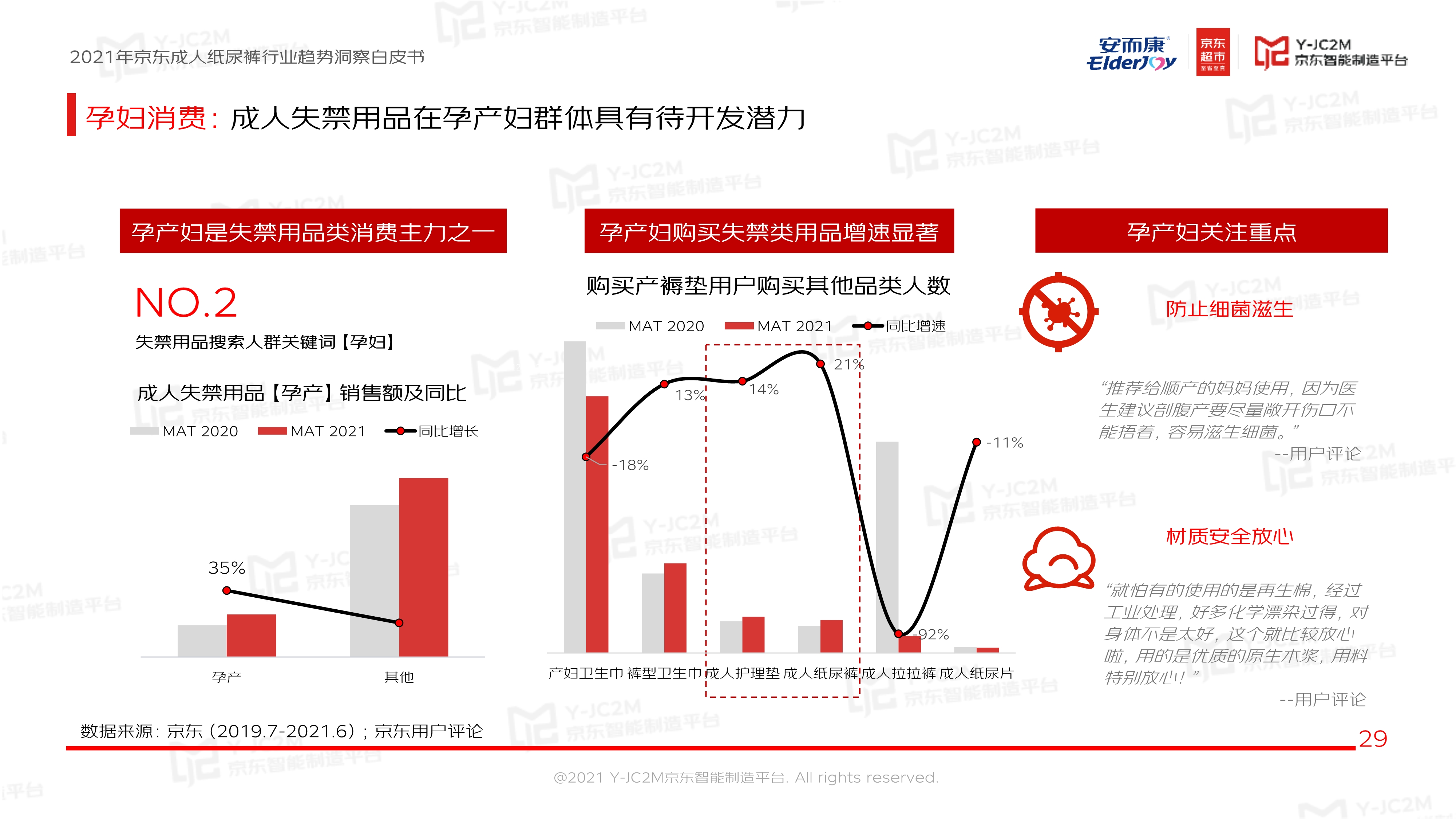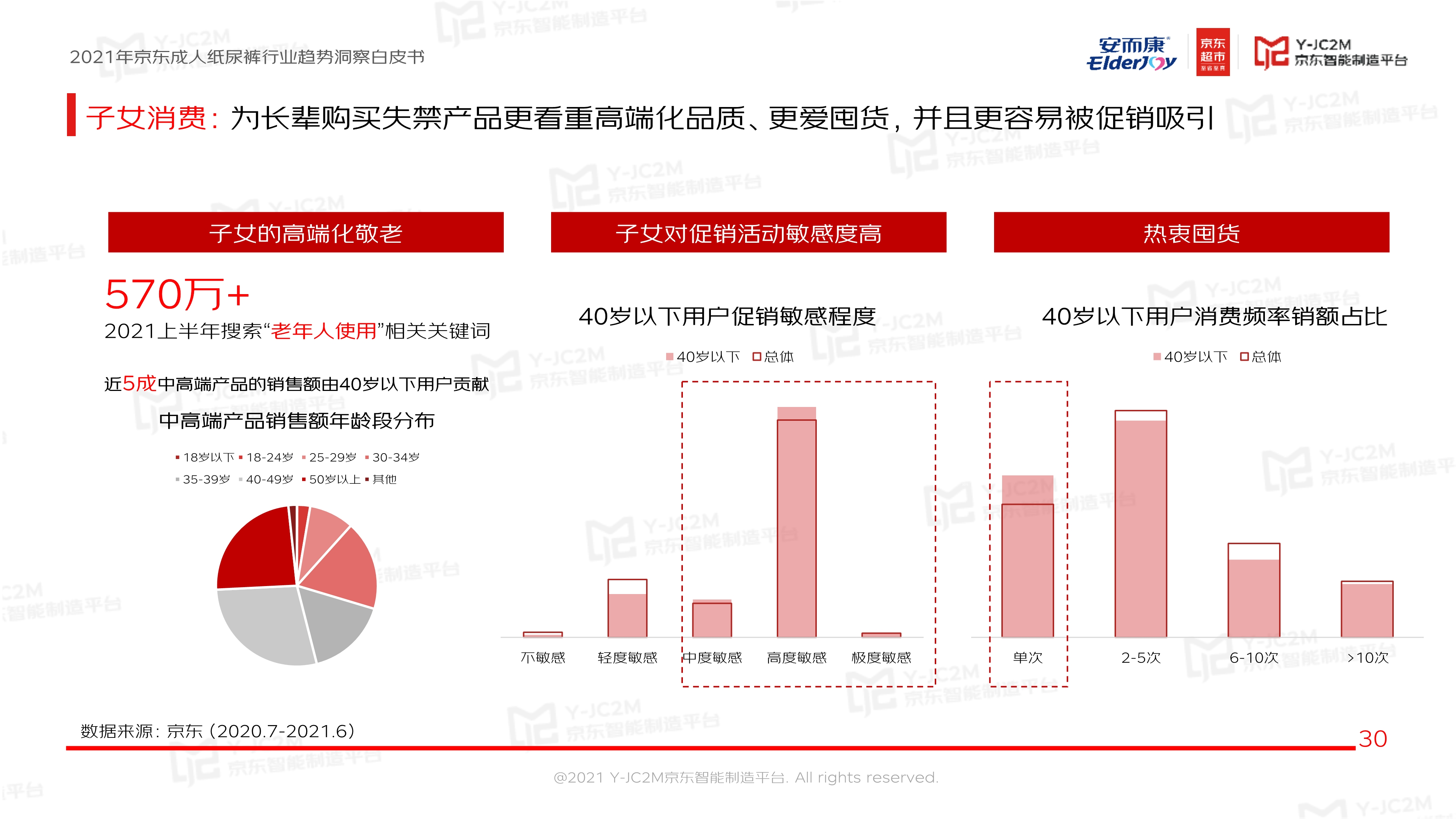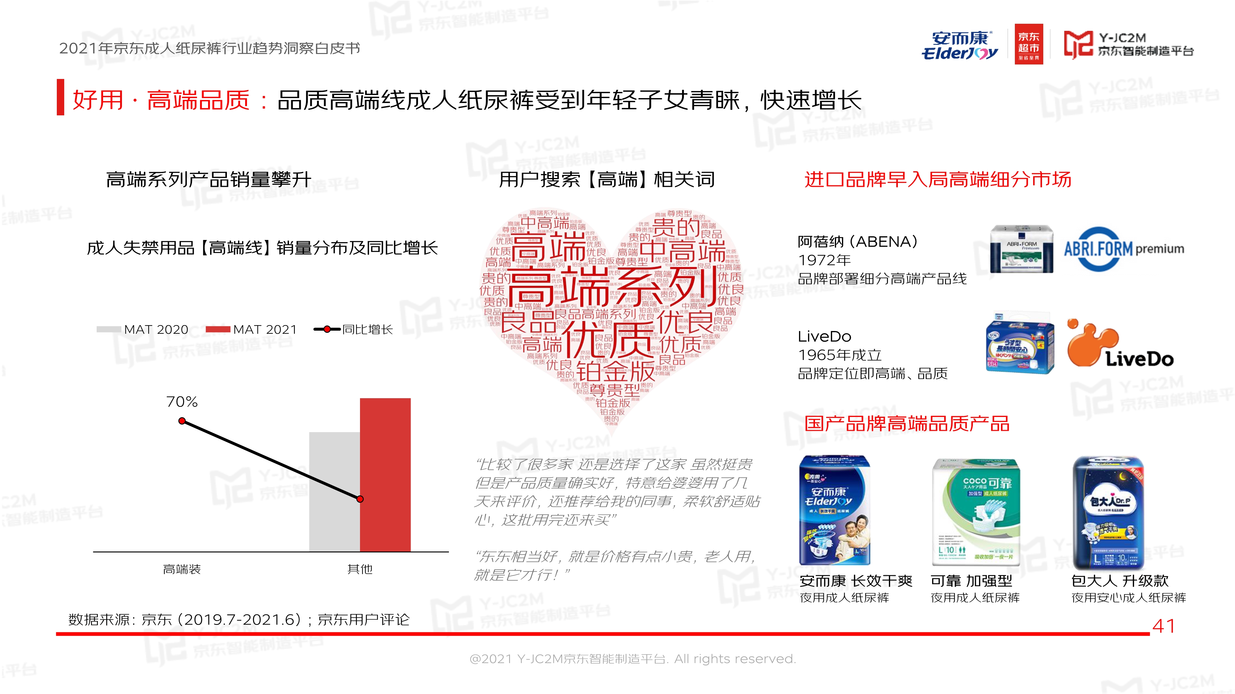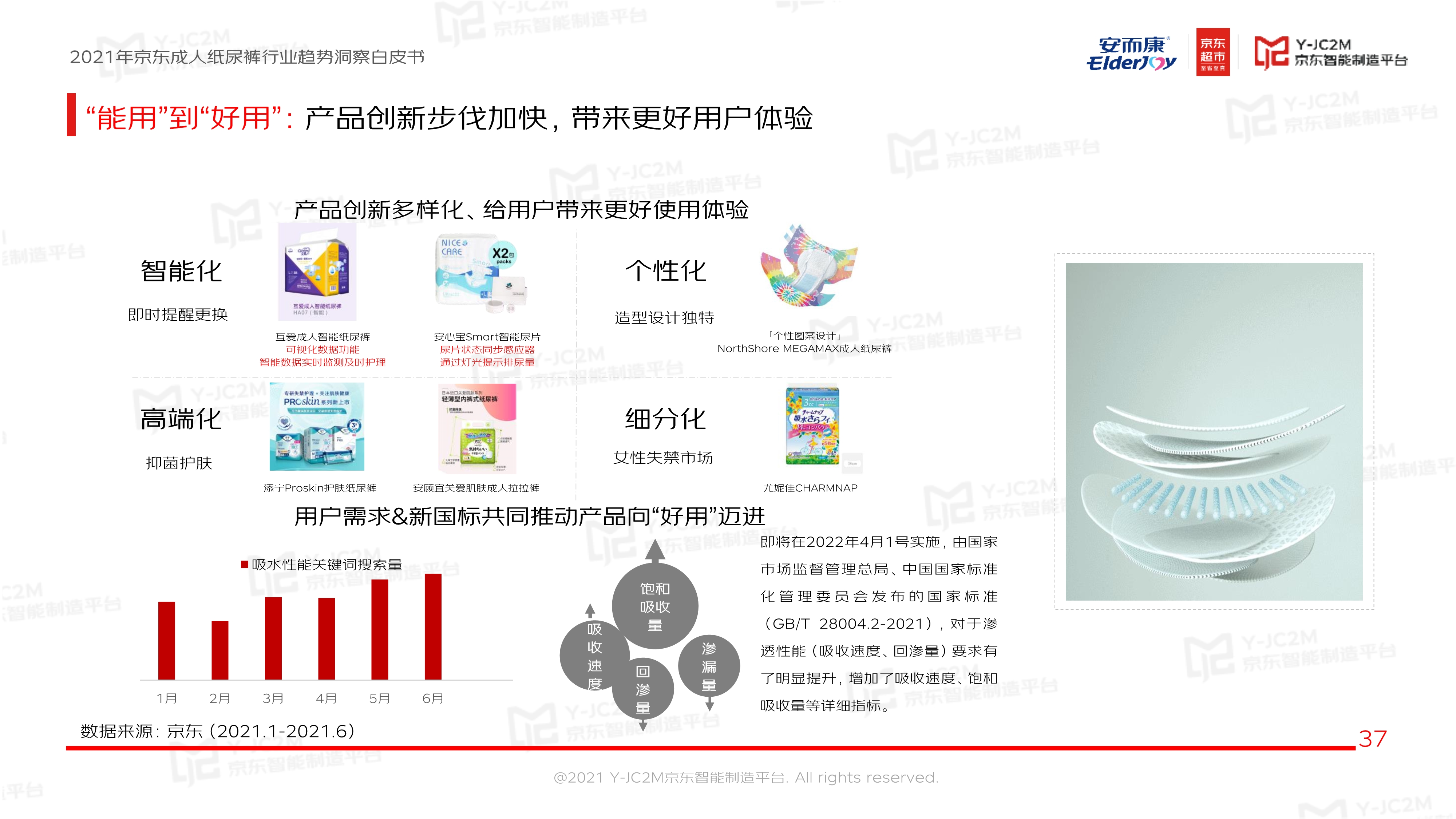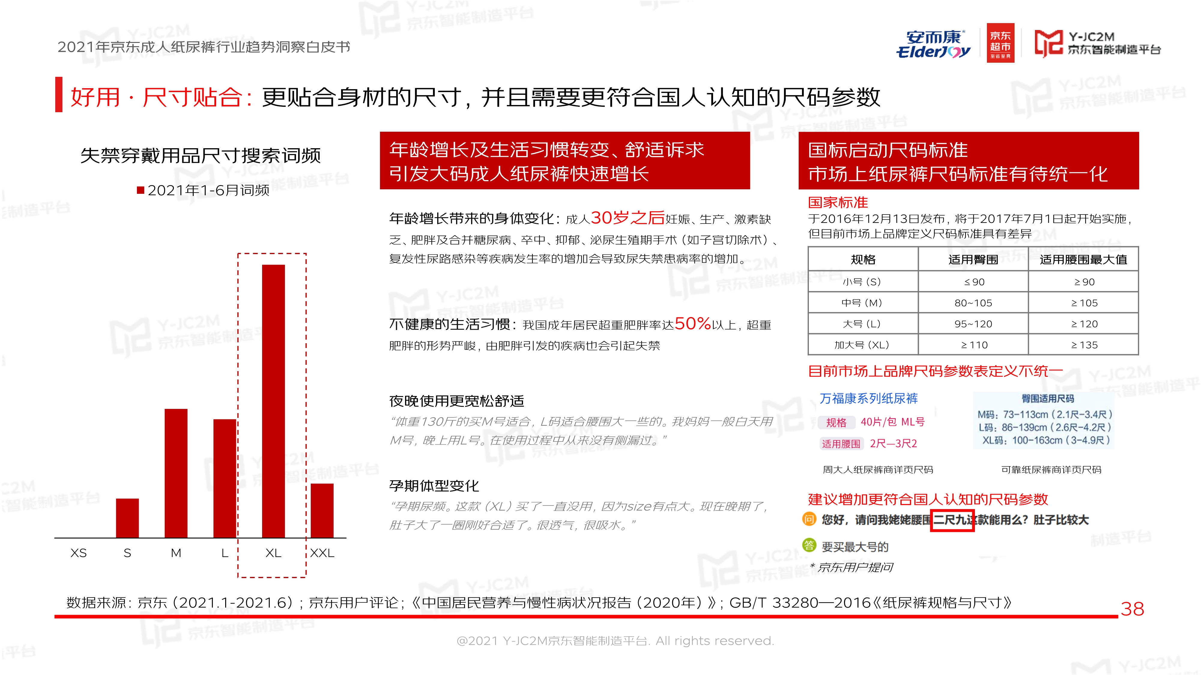 时期: 2023-01-07近日,乐盈Vll旗下成人纸尿裤品牌安而康联合京东智能制造平台共同发布《2021年京东成人纸尿裤行业趋势洞察白皮书》(下称《白皮书》),从行业概况、品牌格局、用户洞察、趋势展望四个维度,结合销量数据与消费者,深入剖析了随着我国步入老龄化社会以及消费观念不断升级,国内纸尿裤市场的全新变化与发展趋势。